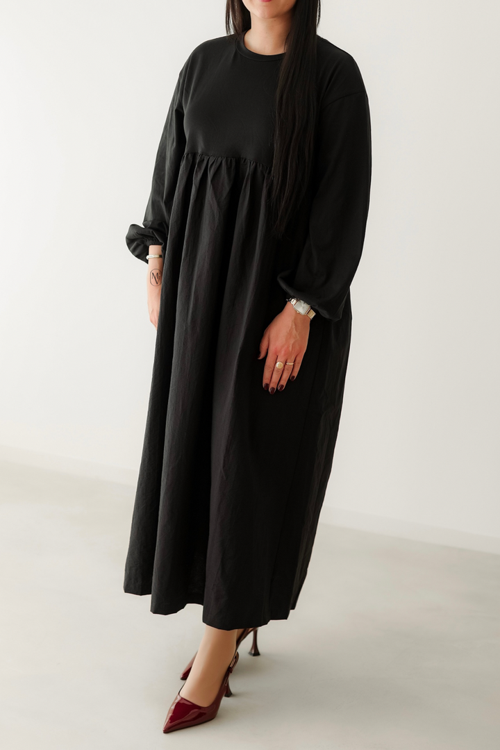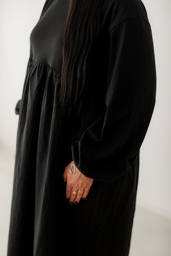 Alliant confort, fluidité et style, cette robe longue bouffante est pensée pour les