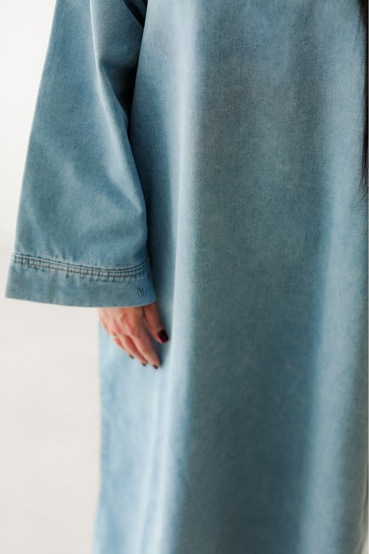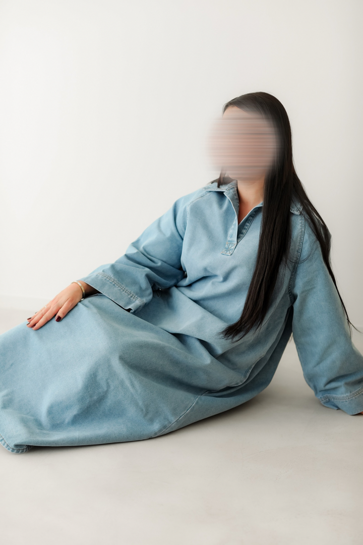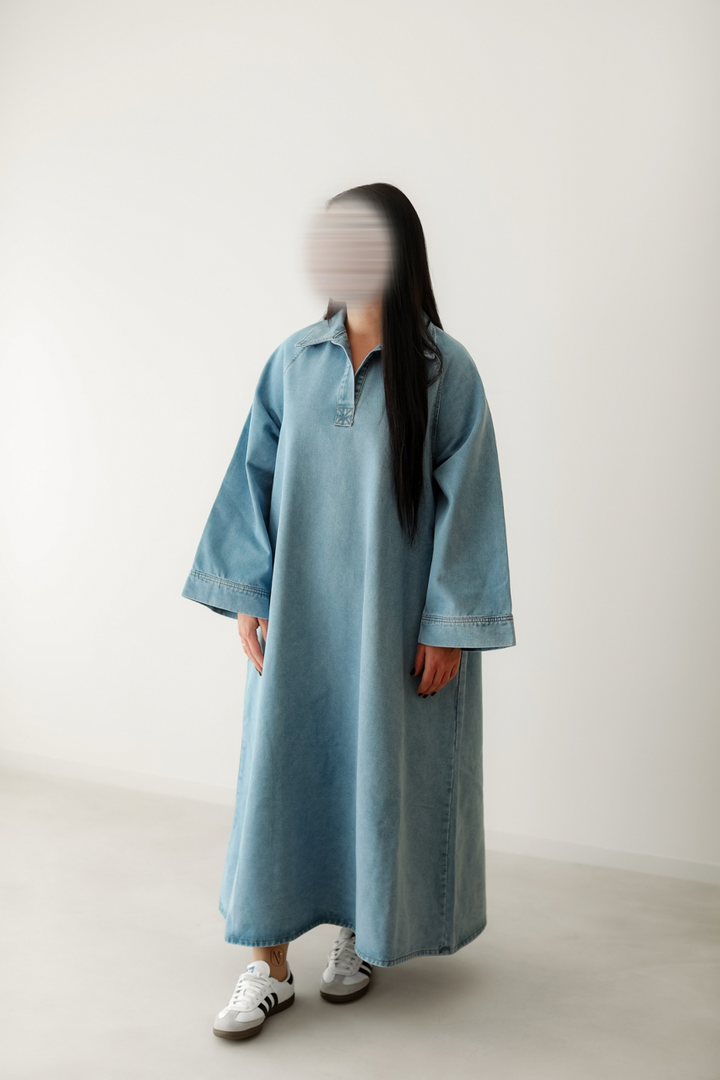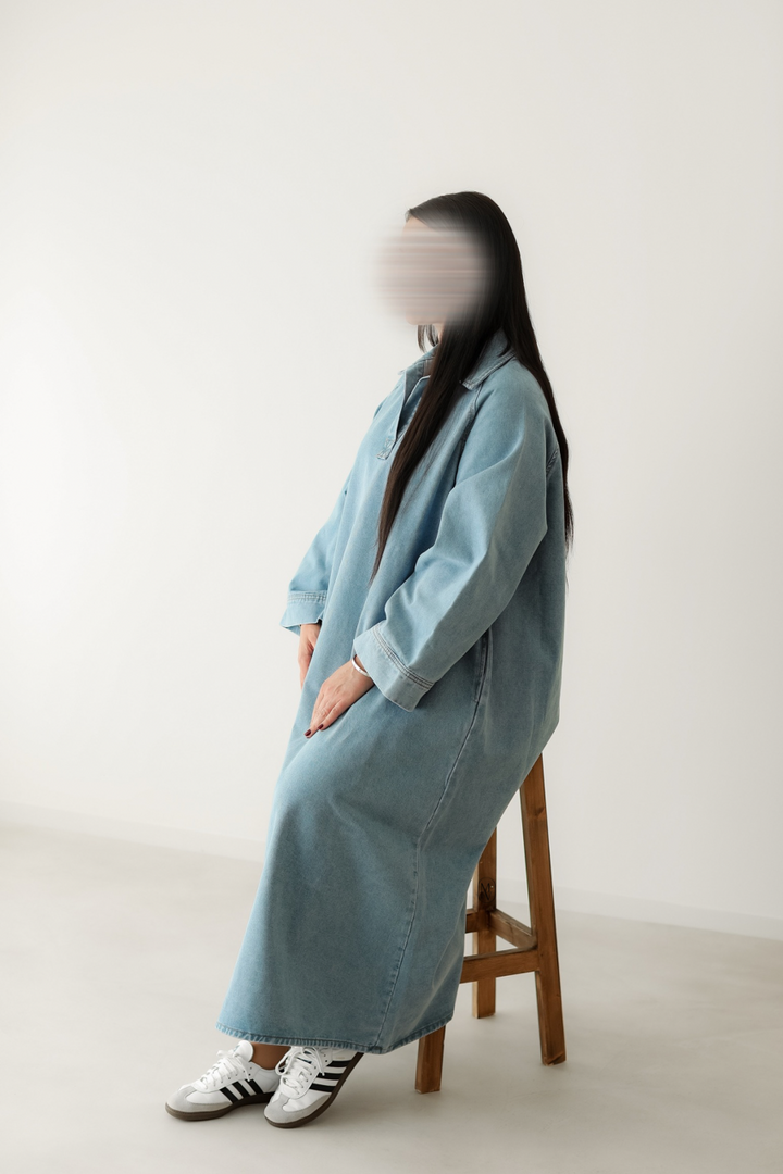 Craquez pour l’allure intemporelle de cette robe longue en jean, conçue pour allier