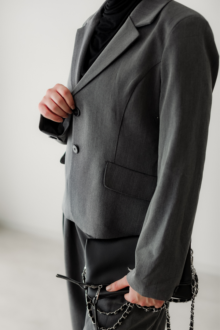 Affichez une allure moderne et sophistiquée avec cet ensemble comprenant une veste