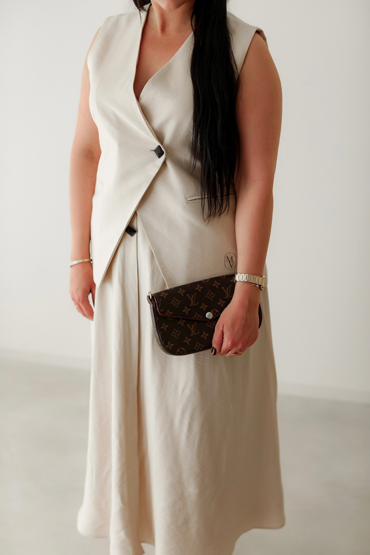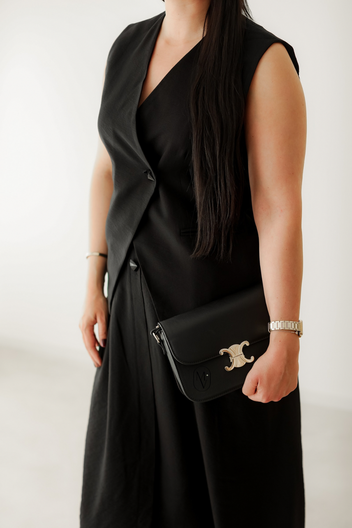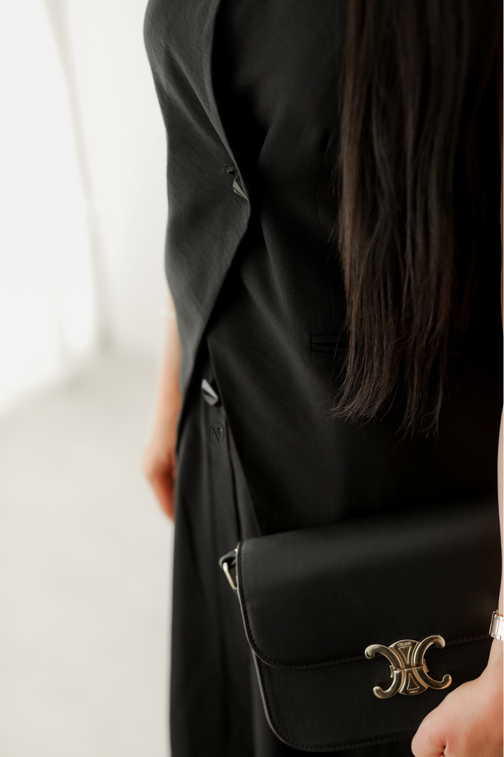 Ajoutez une touche de style affirmé à votre dressing avec cet ensemble raffiné. Le gilet